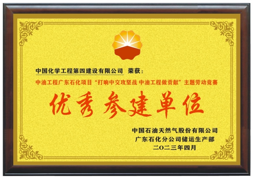 近日,由華北公司承建的廣東揭陽石化包裝廠房項(xiàng)目喜訊連連,先后收到業(yè)主單位中國石油天然氣股份有限公司廣東石化分公司發(fā)來的“感謝信”和廣東石化分公司儲運(yùn)生產(chǎn)部授予公司的“優(yōu)秀參建單位”榮譽(yù)獎牌。