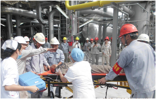 此次觀摩活動(dòng)是公司2017年度“安全生產(chǎn)月”和“安全生產(chǎn)萬里行”計(jì)劃系列活動(dòng)之一,其目的是進(jìn)一步加強(qiáng)公司施工安全生產(chǎn)管理,落實(shí)企業(yè)安全生產(chǎn)主體責(zé)任,規(guī)范項(xiàng)目施工安全生產(chǎn)標(biāo)準(zhǔn)化工作,推動(dòng)工程項(xiàng)目施工標(biāo)準(zhǔn)化建設(shè)和精品工程建設(shè),提升公司工程項(xiàng)目施工的質(zhì)量、安全和品質(zhì)。來自各分公司的書記、分管安全的副經(jīng)理、安全負(fù)責(zé)人等20多家單位(部門)的30多人參加了這次觀摩活動(dòng)。 觀摩活動(dòng)以O(shè)CU項(xiàng)目“氮?dú)庵舷⑹鹿蕬?yīng)急救援演練”拉開帷幕。