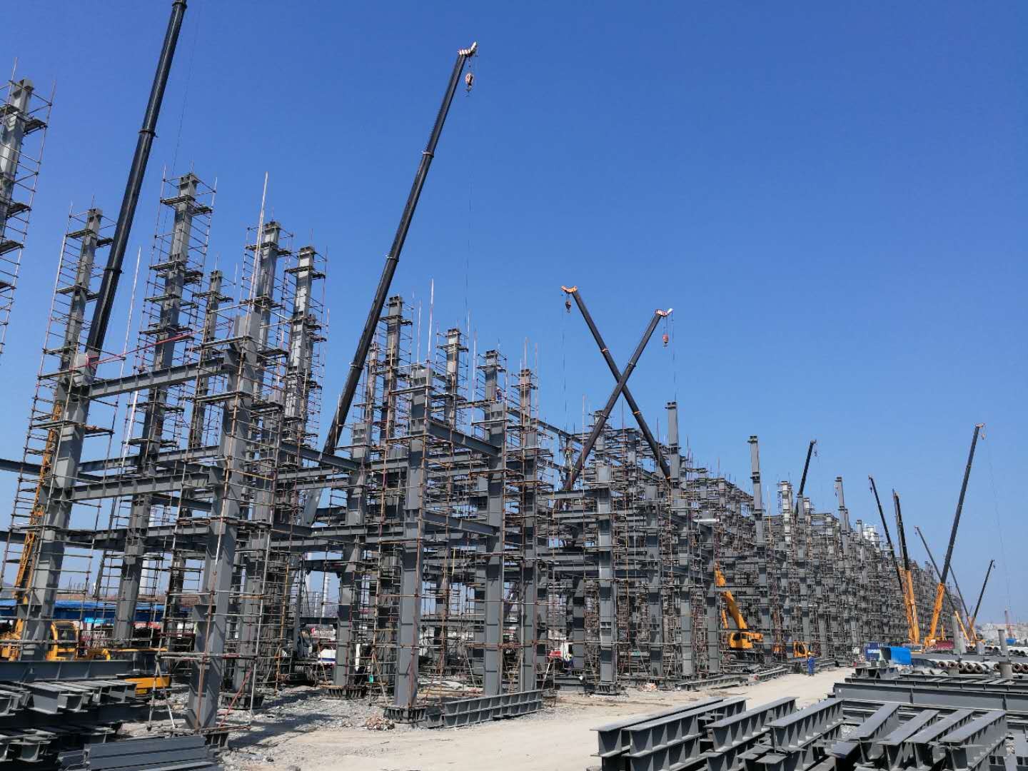 如今,項目部各工點全面鋪開、熱火朝天,施工生產正處于快速穩步推進之中。管廊鋼龍拔地而起、單月產值節節攀高,施工現場呈現出比、學、趕、幫、超的繁忙景象。