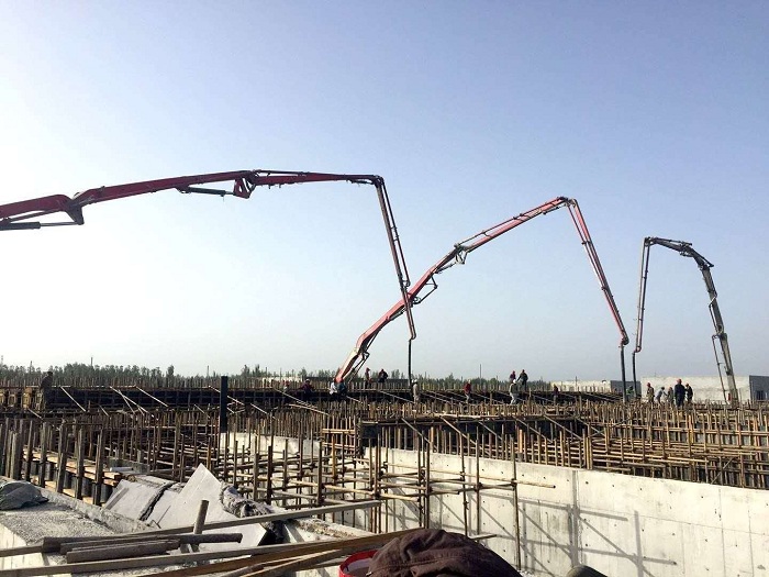 9月8日,根據(jù)當(dāng)?shù)厣添帕?xí)性和前兩次AO池筏板基礎(chǔ)和A區(qū)壁板澆筑的經(jīng)驗,中南分公司喀什博天供排水項目部決定利用難得的陰天進(jìn)行AO池B區(qū)池壁商砼澆筑。