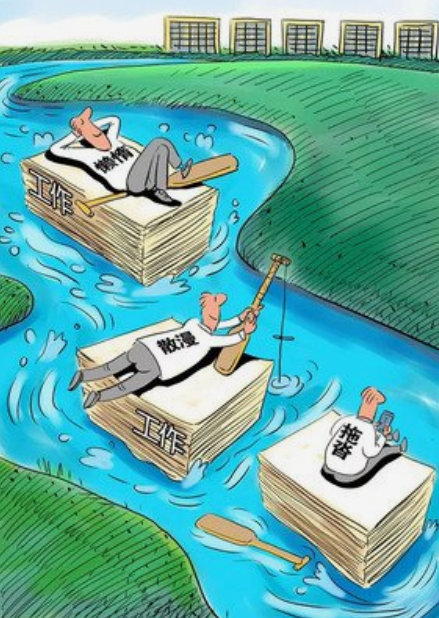 工作時候玩忽職守、消極怠工,不認真馬虎了事三天打魚兩天曬網。
