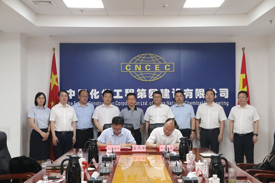 7月9日,公司與天津渤化工程有限公司簽署了戰略合作協議。公司黨委書記、董事長胡流芳,天津渤海化工集團有限責任公司黨委書記、董事長王俊明,總工程師、渤化化工發展有限公司黨委書記、董事長張曄輝等出席并見證簽署。公司黨委副書記、總經理周鴻與天津渤化工程有限公司黨委副書記、副董事長詹宏智代表雙方簽署協議。