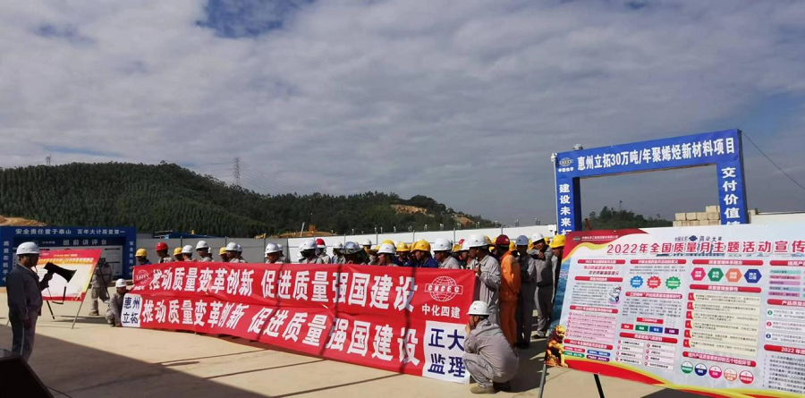 日前,華南公司惠州立拓項目開展以“推動質量變革創新促進質量強國建設”為主題的2022年“質量月”活動啟動儀式。