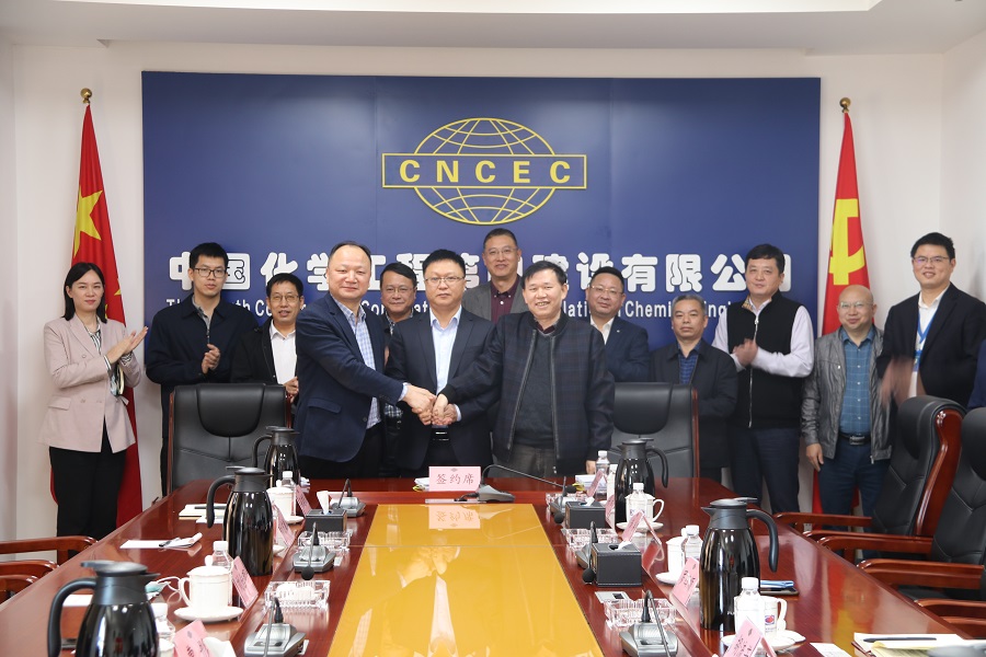10月11日,公司與廣西自貿區宏坤新材料科技有限公司在四化大廈舉行粗苯加氫EPC總承包項目簽約儀式。公司黨委書記、董事長胡流芳,黨委副書記、總經理周鴻,廣西宏坤新材料公司董事長曹彤、總經理劉佳明,中化設計公司董事長羅四順出席并見證簽約儀式。