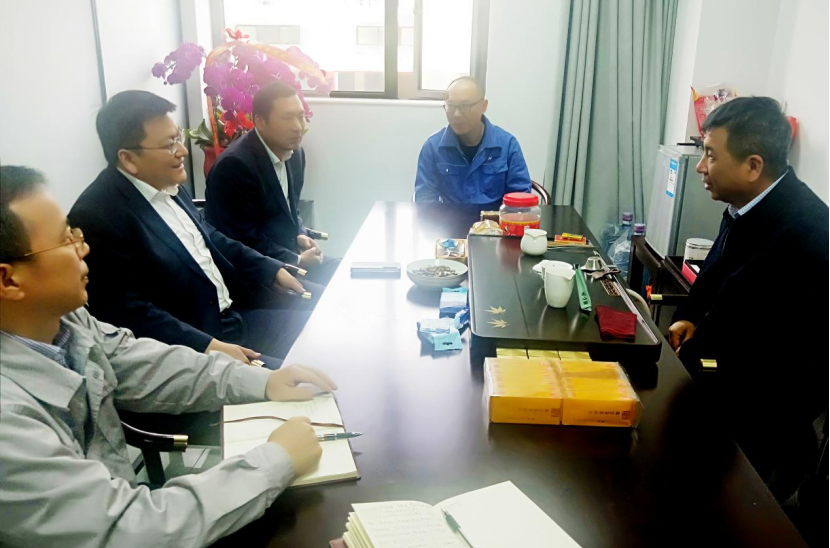 在海泉化學公司總部,何積庚對趙亮一行的到訪表示歡迎,對公司積極整合資源,加快推進海泉化學項目建設,確保3.30目標如期實現表示高度贊賞,希望與公司持續深化合作,攜手為建設古雷石化基地貢獻力量。