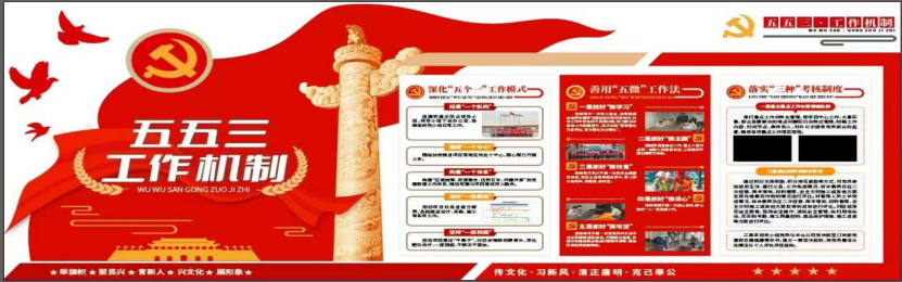 (圖為華北公司“553”工作機(jī)制:“五個(gè)一”工作模式、“五微”工作法、“三項(xiàng)考核機(jī)制”)