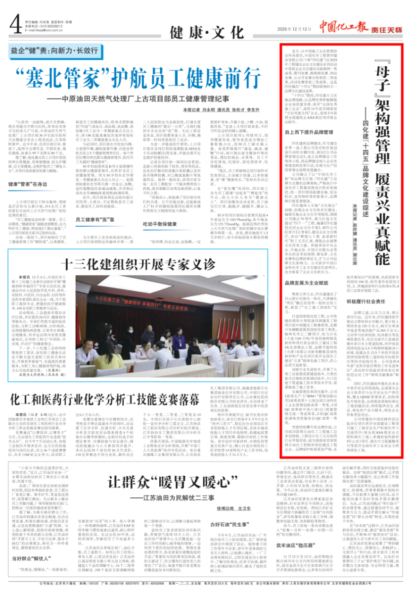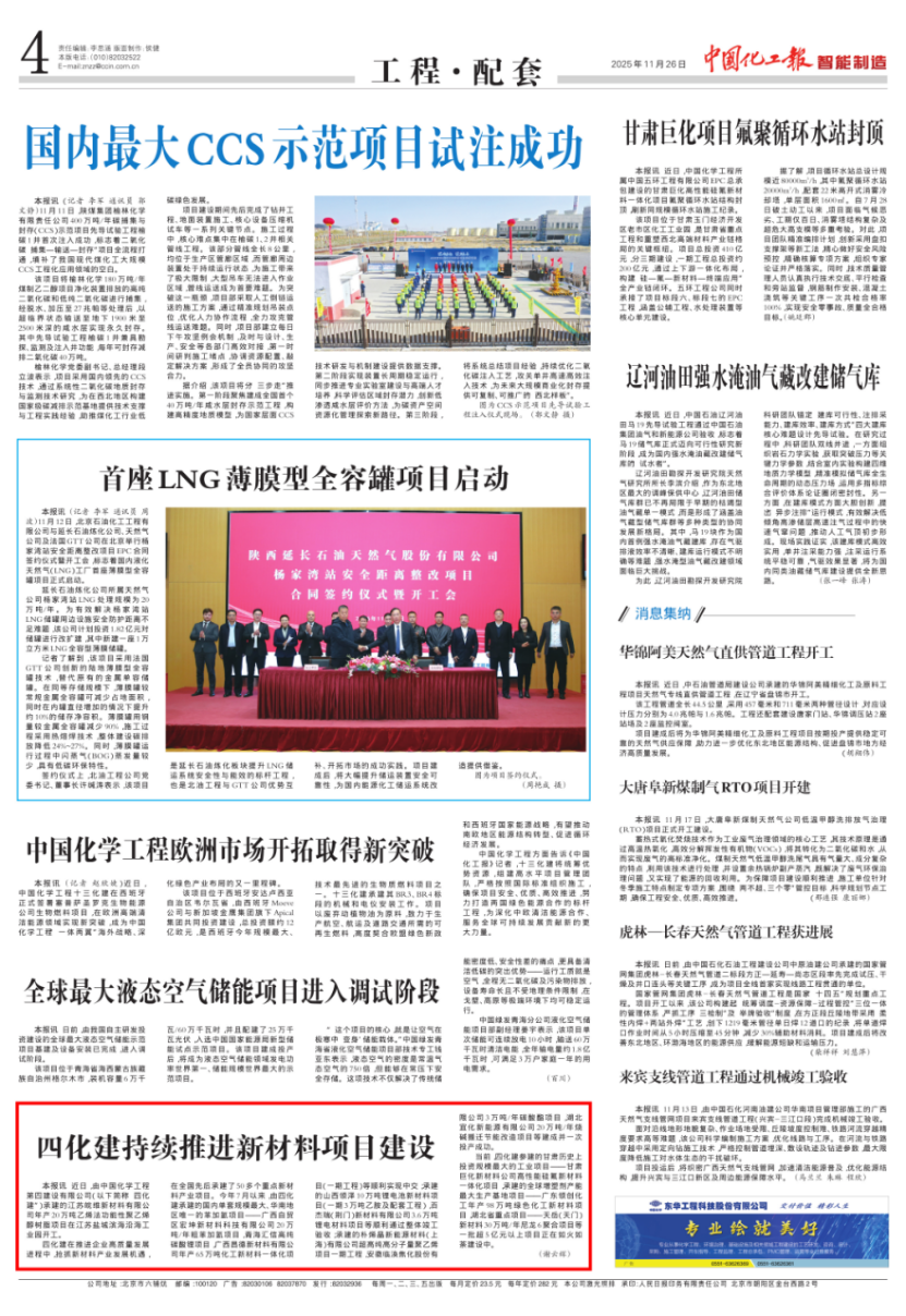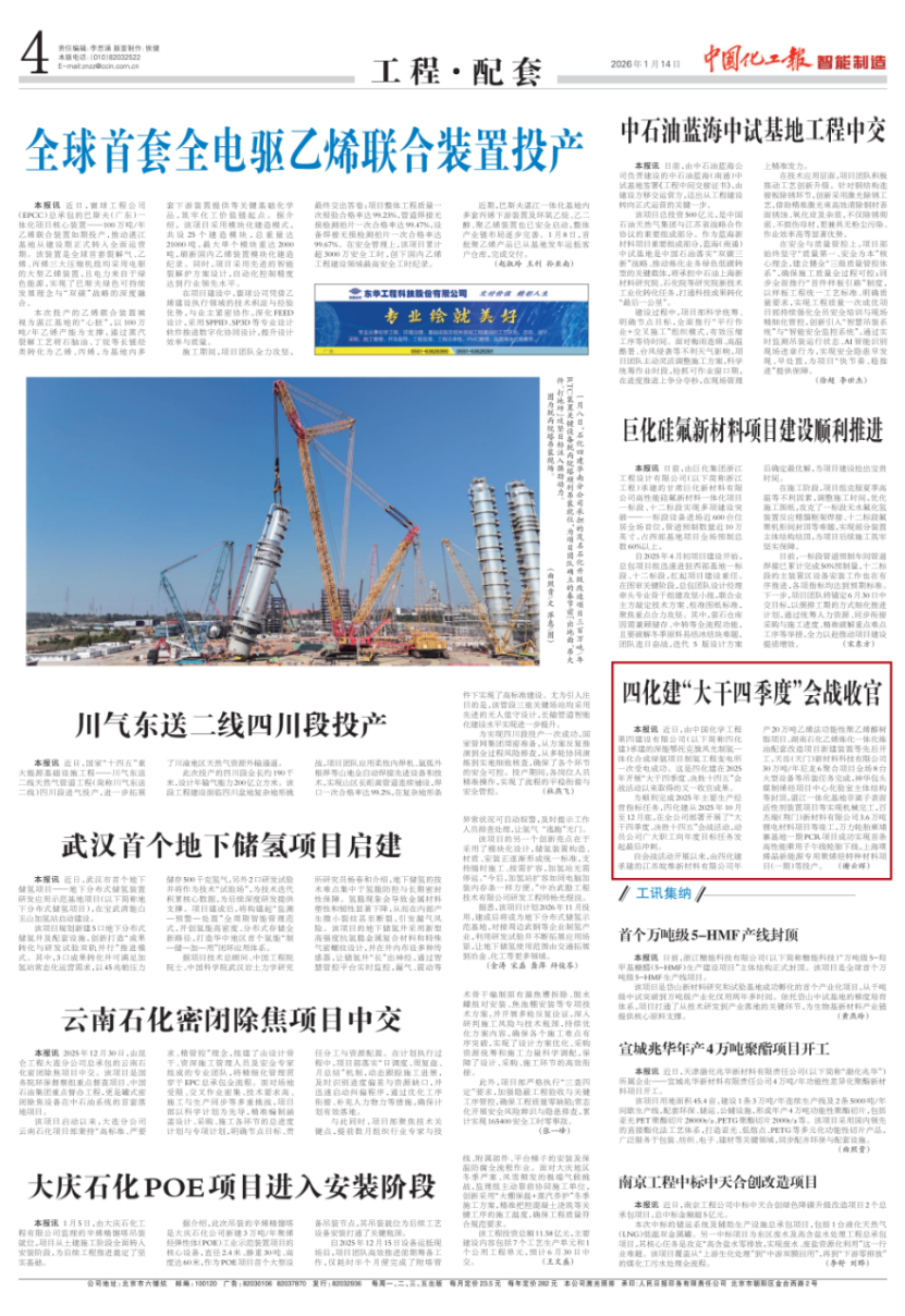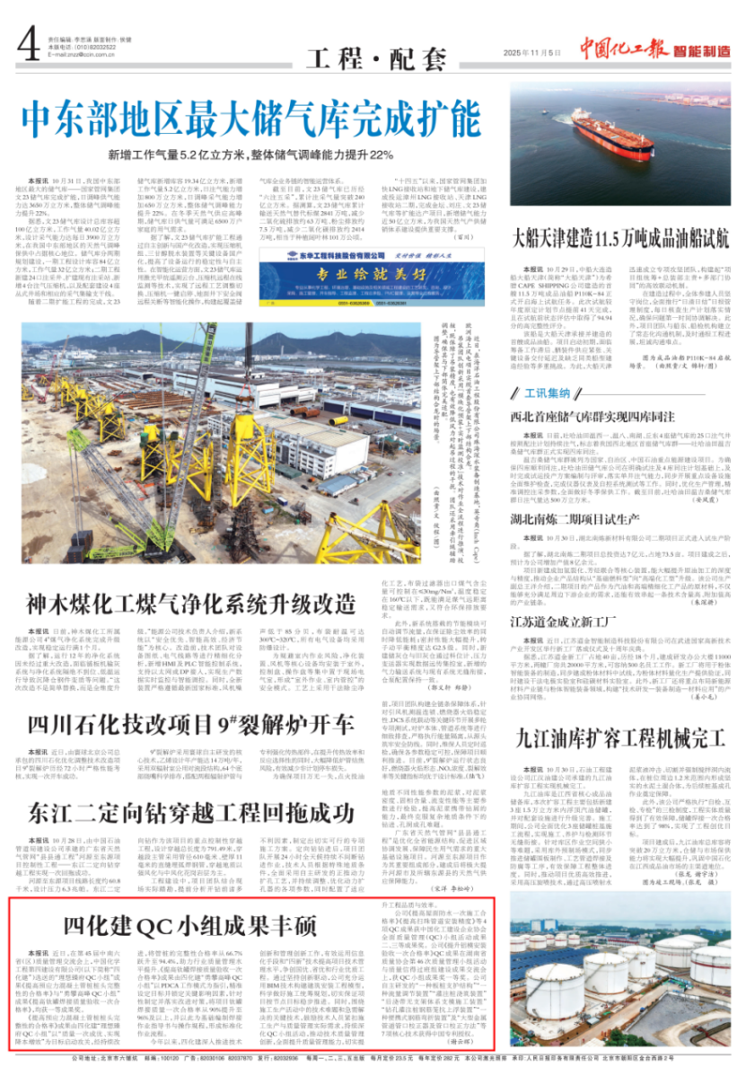 近日,中國石油和化學工業權威報紙、中國百強報刊——《中國化工報》連續刊發多篇報道,聚焦中國化學工程第四建設有限公司在2025年收官之際取得的系列發展成果,充分展現企業在新市場開拓、重大項目攻堅、技術創新驅動、品牌文化塑造及新興產業布局等方面的綜合實力與奮進姿態。