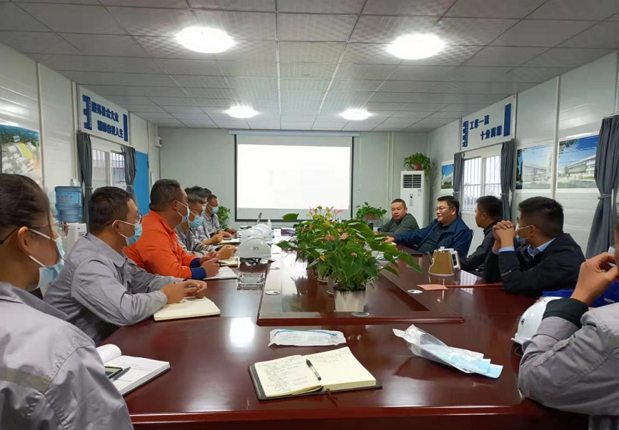 趙亮聽取了兩個項目部施工組織設計、施工方案、安全等方面的情況以及今年四季度的進度計劃和疫情防控工作匯報,對項目取得的成績表示肯定。同時對項目部材料儲備、采購周期設定、進度控制體系的建立、人員健康安全、隊伍建設等方面提出了具體要求。他強調,各項目部要加強組織領導、強化安全管理、嚴控質量和進度關,建立資金、采購等風險防控體系,深入開展大干90天活動,保質保量完成各項施工任務,同時做好影像資料宣傳,力爭省優工地,把項目作為公司對外宣傳的窗口。