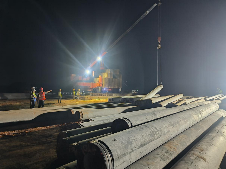 自項目進場以來,項目部全體人員鉚足干勁,以起步即沖刺、開工即決戰的大干姿態,克服高溫及場地困難,合理組織、科學規劃,每日召開內外部碰頭會,一手抓安全生產,一手抓施工進度,穩步推進項目建設。項目部充分利用當前施工的黃金季節,各工序穿插進行,全力保證人機料法環等施工要素持續在線,迅速打開工作局面。