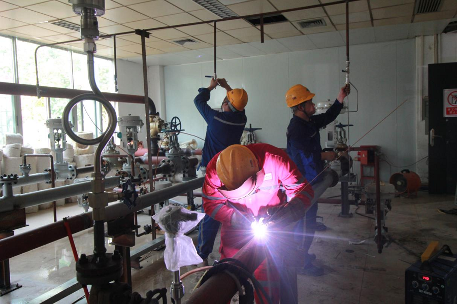 據了解,此次搶工包括11套流量計安裝4套減溫減壓閥組裝,真空泵管道改建、上百組閥門安裝等。為確保優質高效完成施工任務,項目克服人員不足、施工組織困難和疫情防控等不利因素,歷24小時連續施工,在9月21日圓滿完成改建管道的拆除、恢復、回裝、試壓、吹掃及監檢工作。