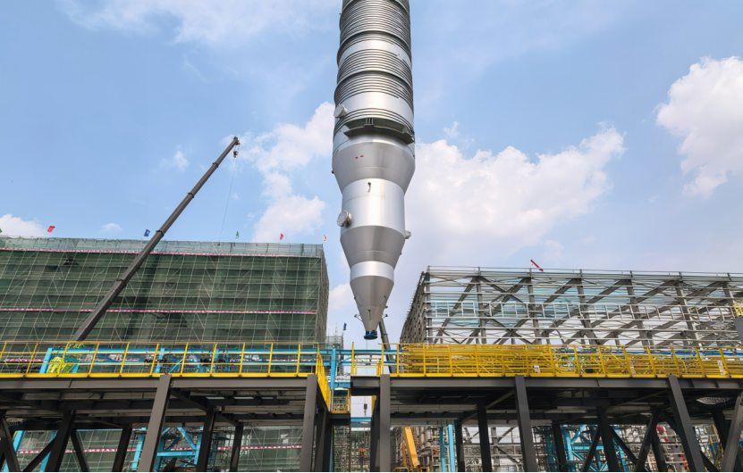 近日,由中國化學四化建承建的上海璞烯晶項目迎來重大進展——裝置中區AB線粉料凈化單元兩臺核心設備順利完成吊裝,精準就位于32.21米高的混凝土框架層。