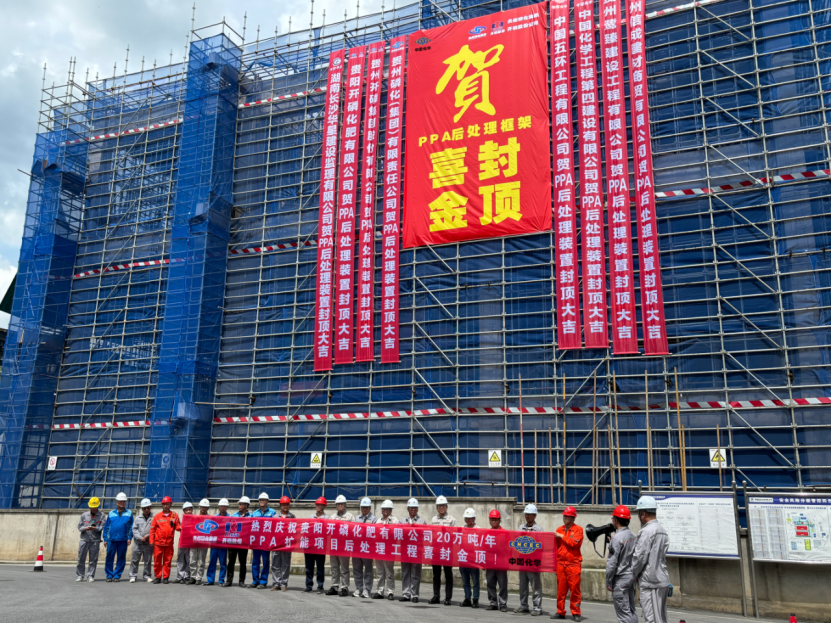 近日,由中國化學四化建華南公司承建的貴陽開磷化肥有限公司20萬噸/年P(guān)PA擴能項目后處理工程主裝置順利封頂,標志著項目正式進入安裝施工階段。